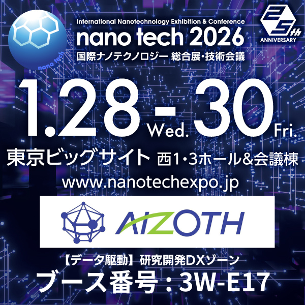 株式会社エイゾスは、2026年1月28日(水)から30日(金)の3日間にわたり、東京ビッグサイトにて開催されるnano tech 2026 国際ナノテクノロジー 総合展・技術会議に出展いたします。