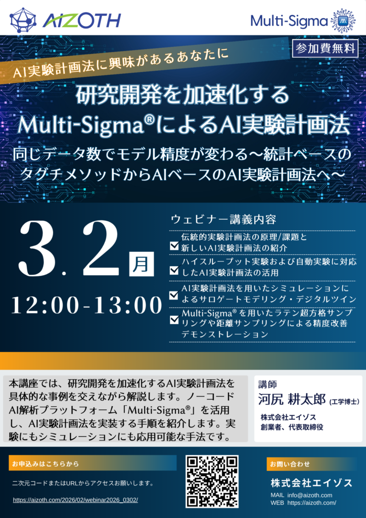 ・ハイスループット実験および自動実験に対応したAI実験計画法の活用